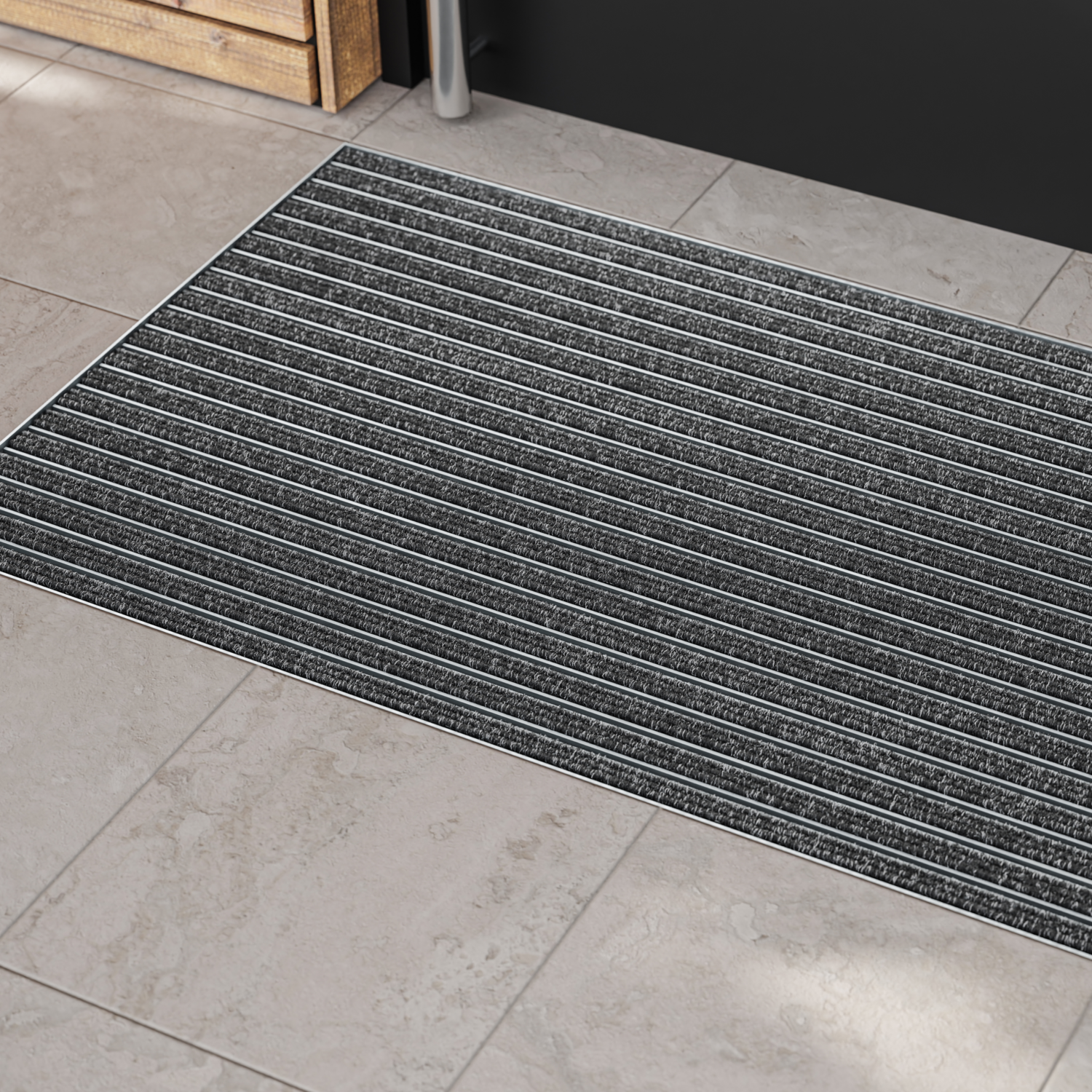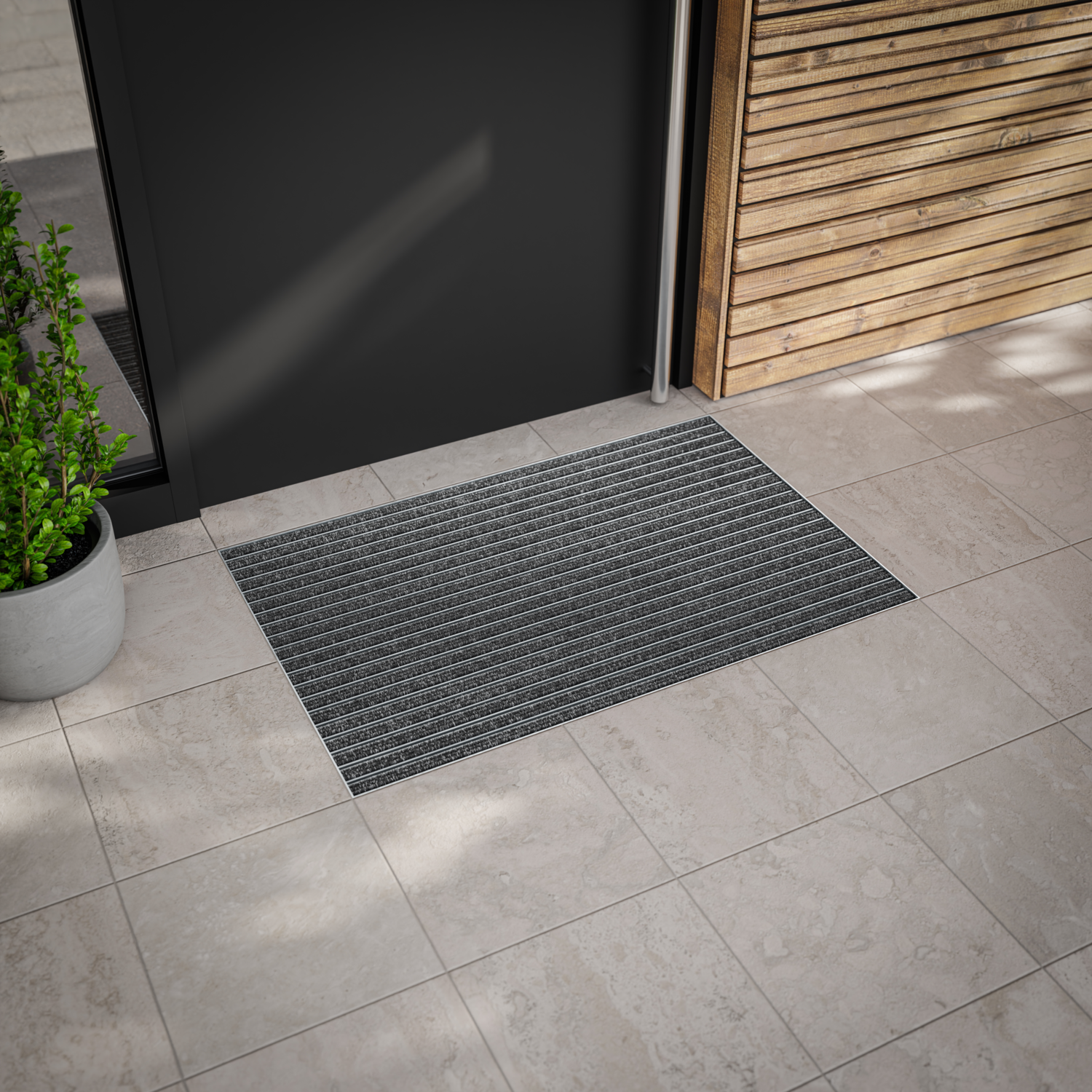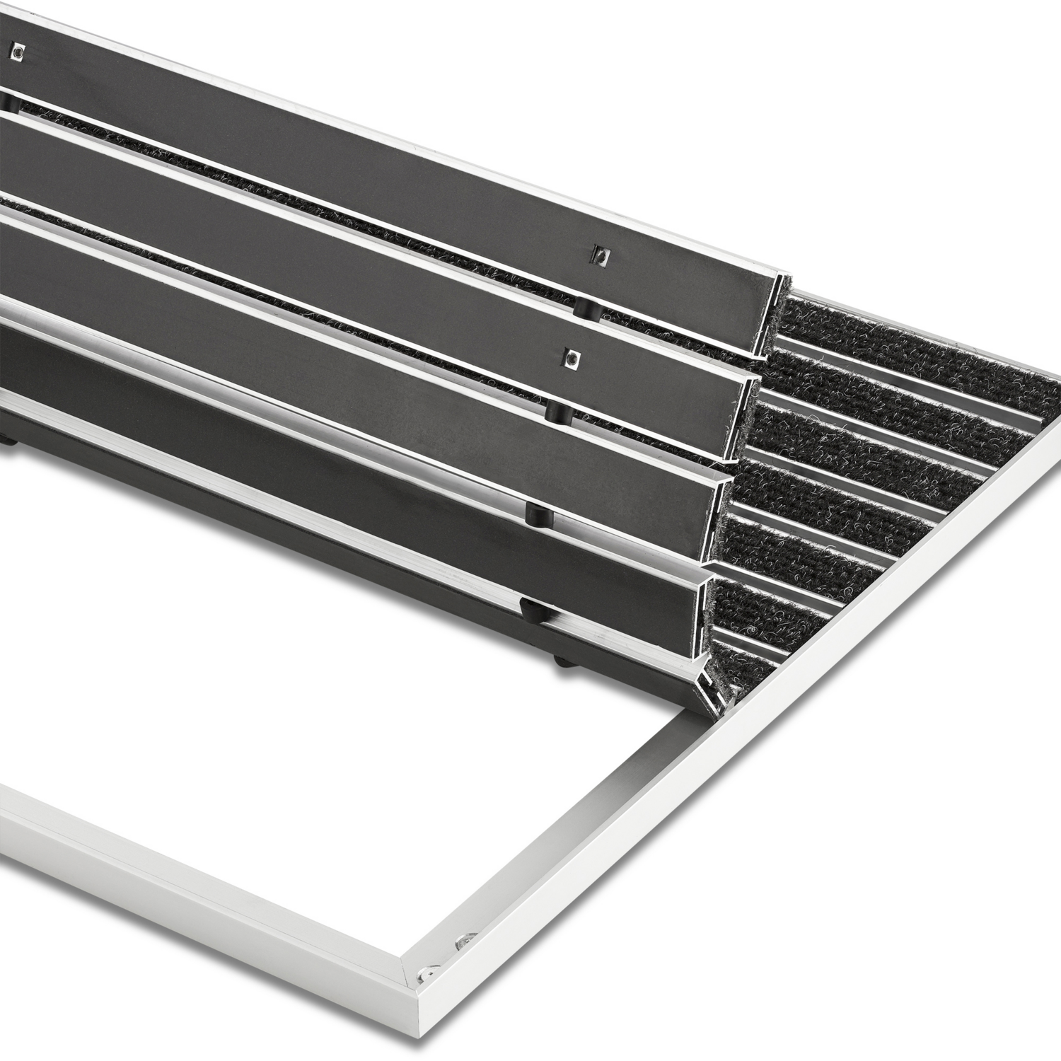 Die eingelassene Fußmatte Portagard I von Kafloor aus robustem Aluminium überzeugt mit hoher Feuchtigkeitsaufnahme, mittlerer Schmutzaufnahme und ist ideal für stark frequentierte Innenbereiche. Sie schützt effektiv und sorgt für Sauberkeit bei jedem Schritt.