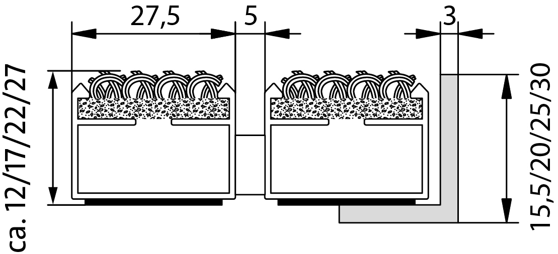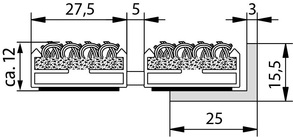 | Trägerprofil | Aluminium-Trägerprofil mit integrierter Mikro-Kratzkante und unterseitiger Trittschalldämmung |